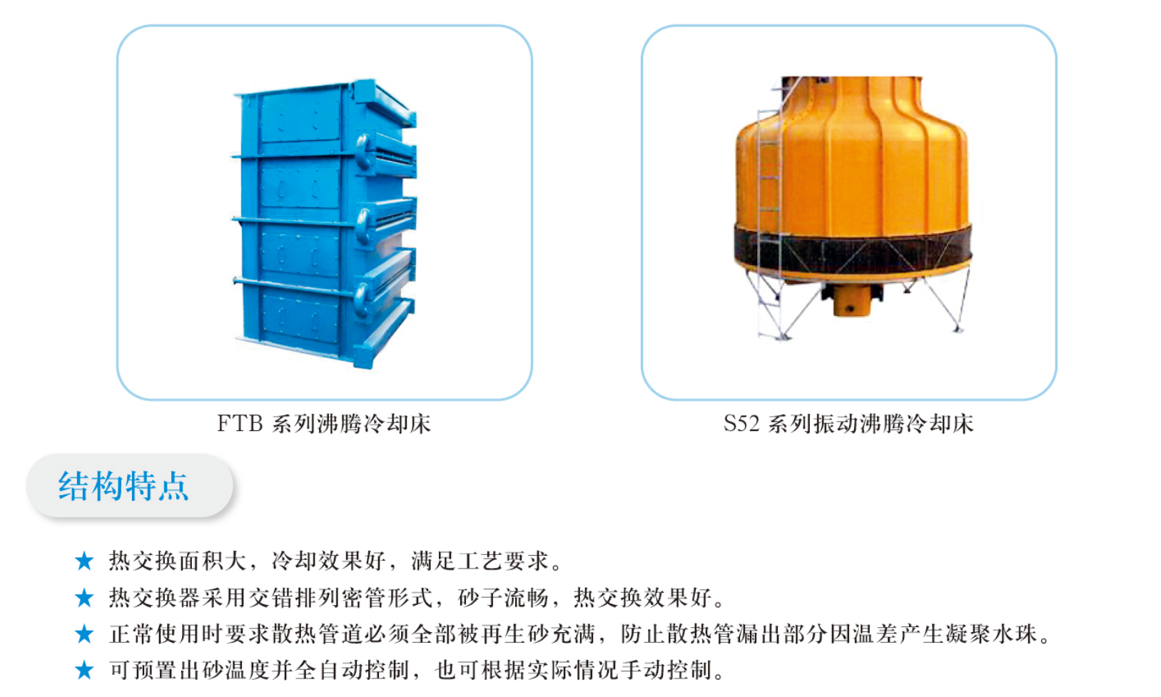 該機(jī)用于樹脂砂舊砂再生后砂溫調(diào)節(jié),采用循環(huán)水管式散熱的熱交換原理,達(dá)到使砂溫降低的目的。本機(jī)配備溫控系統(tǒng)和循環(huán)水系統(tǒng)。